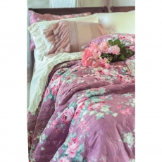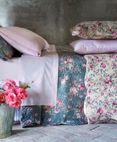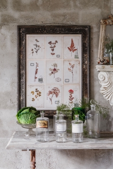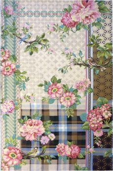 Teppich "Secret Garden", Glasrillengläser mit nostalgischen Blütenverschlüssen, Tassen in Pastell, italienische Tischwäsche mit Blütendruck und Rüsche, Laterne mit Rosenblüten, Glasschale mit Silberglanz, schönes Bilder 2-er Set mit Pfingstrose und Kamelie.