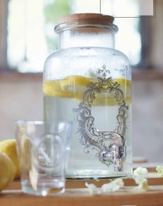 Verwöhnen Sie sich und Ihre Gäste mit köstlichen Limonaden, Sprizz und anderen erfrischen Durstlöschern. Das dekorative, große Glas mit barockem Emblem und funktionellem Zapfhahn ist leicht zu befüllen und zu reinigen, der Korken schützt vor Verunreinigungen.