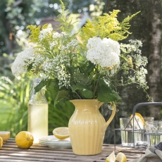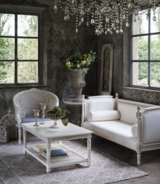 Lassen Sie sich verzaubern von weißen Blüten, strahlendem Gelb, edlem Glas, elegantem Porzellan, Perlmuttschimmer und einer nostalgischen Sitzgarnitur mit französischem Flair.