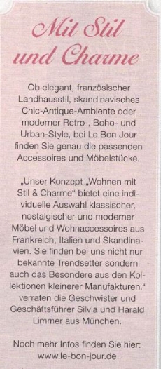 In der Frühlingsausgabe 2017 der Zeitschrift Country Homes finden Sie auch eine "Bestell-Collection", die in Zusammenarbeit mit der Chefredaktion des ipm-Verlages aus München erstellt wurde.