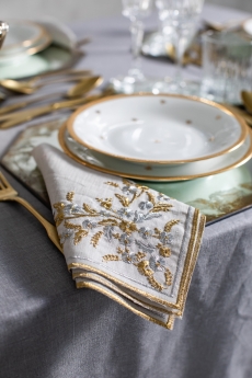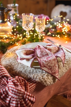 Elegantes Toile de Jouy Zierband mit gestickter Kordelkontur für die Festtafel in stilvoller Perfektion.