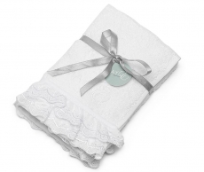 Bella Donna - Weiches Frottee Handtuch, veredelt mit einem Volant aus zarter Leinengaze – ein sinnlicher Genuss, der uns Frauen immer wieder bezaubert.
