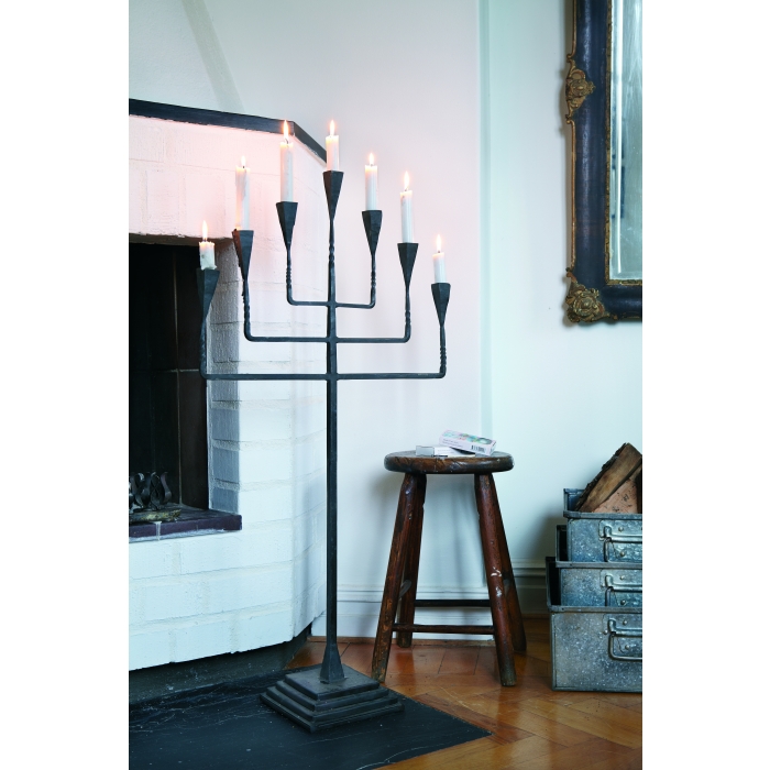 7-KERZENLEUCHTER SCHMIEDEEISEN Großer Kandelaber aus schwarzem Schmiedeeisen in schlichtschöner Form. Steht sicher mit einem Sockel von 20 x 20 cm. Nach oben sich verbreiternde Kerzentüllen verhindern bei der richtigen Kerzenwahl Wachstropfen auf dem Boden. Genießen Sie das Kerzenleuchten dieses besonders schönen Leuchters. Höhe 100cm, Breite 54 cm, Sockel 20 x 20 cm. Material: Eisen geschmiedet Lieferumfang ohne Dekoration Sie haben eine Frage zu diesem Produkt? Dann schreiben Sie uns eine kurze MAIL, oder rufen Sie an uns an unter: 089 / 68 72 32. Wir beraten Sie gerne!