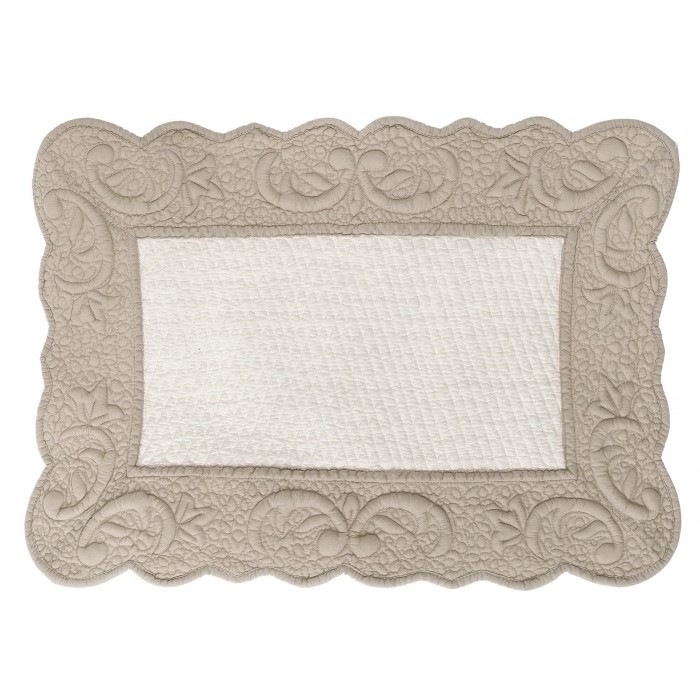 Der Klassiker französischer Boutis-Tischsets mit hellbeigem Bordürenrand und crèmefarbenem Rautenmuster im Mittelteil.