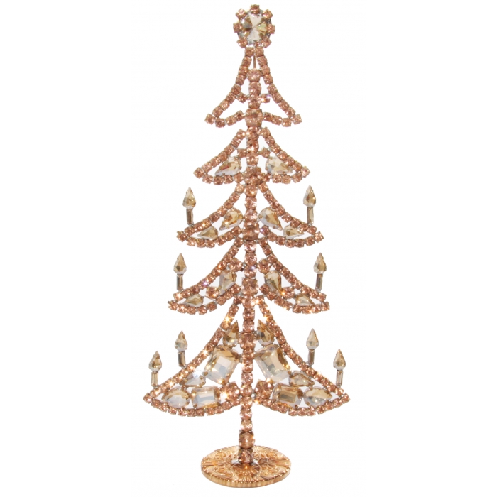 In der Tradition hochwertiger Glasmacherkunst wird auch dieser Gablonzer Retro-Schmuckbaum in Handarbeit gefertigt. Die funkelnden, facettierten rotgoldenen Glassteine sind einzeln gefasst, auf der Rückseite ist die Montur komplett messingfarben.