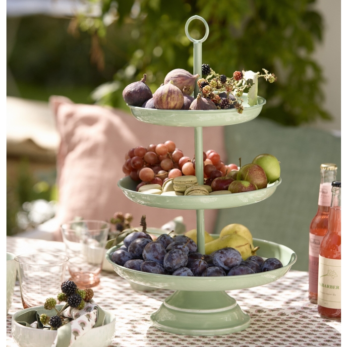 Ein dekorativer Blickfang ist dieses dreistöckige Lieblingsstück aus Emaille, für