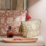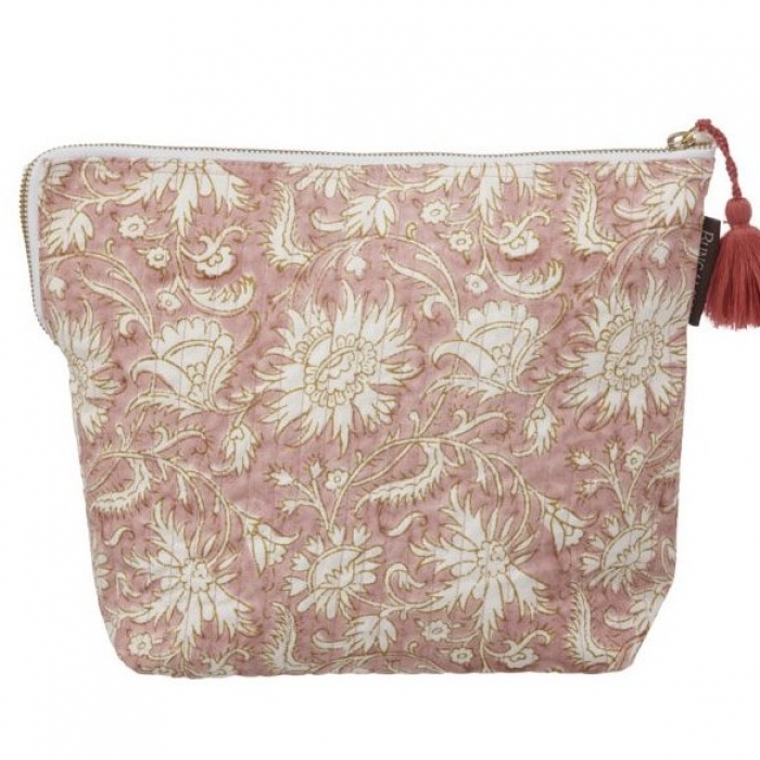 Kulturbeutel/Täschchen mit floralem Muster in wunderschöner Farbenkomposition, der Stoff wird von Hand bedruckt, jedes Täschchen ein zauberhaftes Unikat.