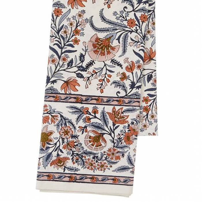 Die musterschöne Tischdecke wird von Hand bedruckt, jede ist ein Unikat mit besonderem Charme.