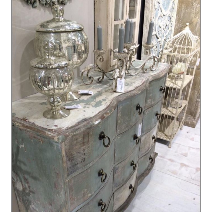 Ein Schmuckstück ist diese antik patinierte Kommode mit 12 Schubladen.