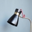 Belgische Designer Leuchte, das kirschrote „Cocotte“ Textilkabel ist namensgebend. Die Leuchte ist an 2-fach verstellbar, der Schirm schwenkbar.