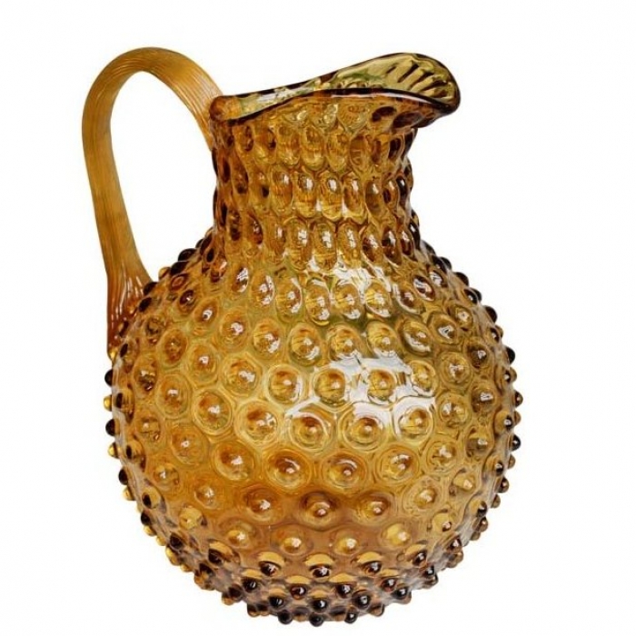 Mundgeblasener Wasserkrug und dekorative Vase aus bleifreiem Kristallglas. Das Hobnail- bzw. Tautropfen Design reflektiert das Licht glanzvoll und unterstreicht die Eleganz von Glas und die Intensität von Farben. Der leicht gerillte Griff ist besonders handlich und wird dem Füllvolumen gerecht.