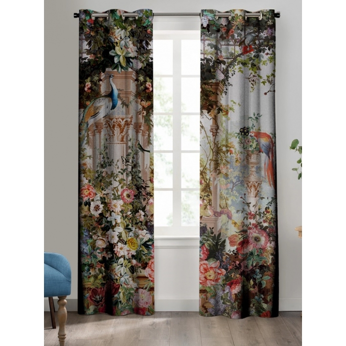 Blickdichter, eleganter, aussergewöhnlicher Vorhang und bildschöner Blick in einen romantischen Garten mit exotischen Vögeln und Pflanzen Opulenz. Der geschlossene Vorhang ist gleich einem Bild ein highlight der Raumgestaltung. Design: B. Piccolillo, Frankreich. Material: Samtvelours/Polyester, Ösen für einfache Montage, waschbar bei 30 Grad, Feinwäsche Maße: 2 Vorhänge à 140 x 250 cm Sie haben eine Frage zu diesem Produkt? Dann schreiben Sie uns eine kurze MAIL, oder rufen Sie an uns an unter: 089 / 68 72 32. Wir beraten Sie gerne!