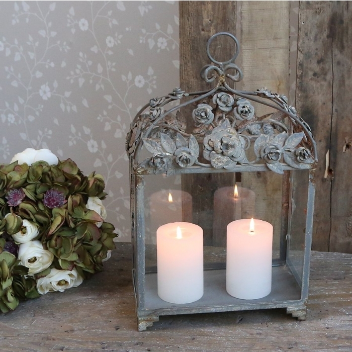 Die dezente chic-antique Patina verleiht den verspielten zinkfarbenen Metallelementen nostalgischen Charme.