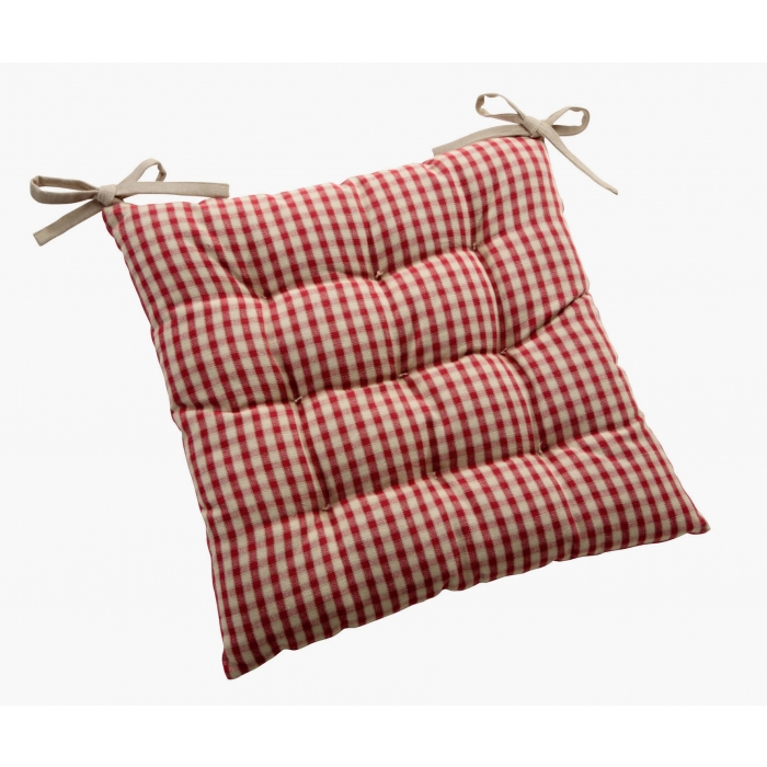 Karo Sitzkissen in rot/beige, Rückseite uni rot, Bändchen in natur gilt als Klassiker Comptoir de Famille Kollektion.