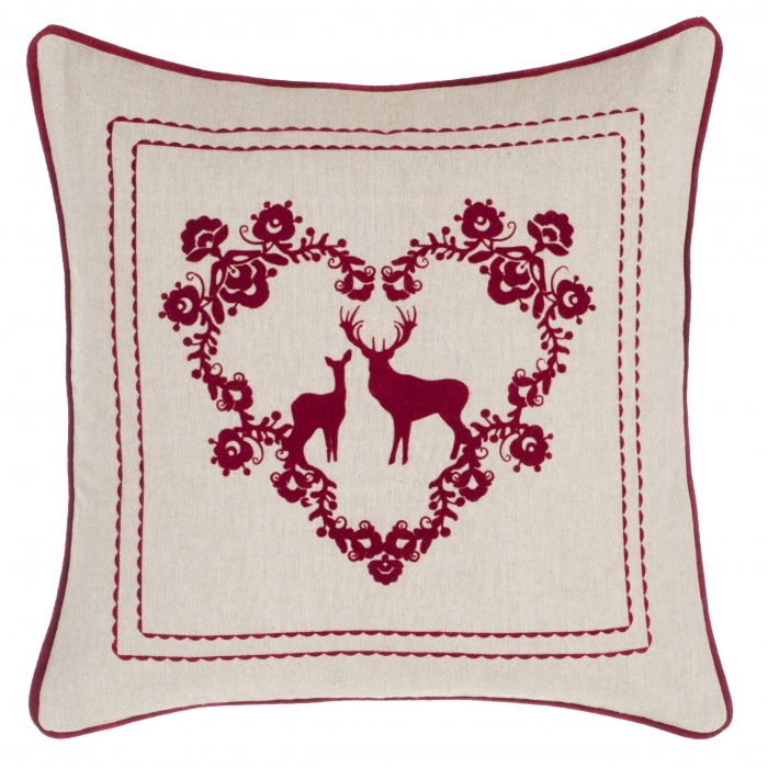 Country Homes Bestell-Collection Kissen Chalet - Hirsch & Herz Alpine Gemütlichkeit mit Herz und Hirsch in den klassischen Landhausstil-Farben Rot und Natur. Das dekorative Kissen für die Eckbank oder das Sofa hat eine schöne rote Randpaspel aus Samt, das Muster ist ebenfalls eine Samt-Applikation. Material: 100% Baumwolle, Maschinenwäsche Maße: 45 x 45 cm Lieferumfang: Kissenhülle Sie haben eine Frage zu diesem Produkt? Dann schreiben Sie uns eine kurze MAIL, oder rufen Sie an uns an unter: 089 / 68 72 32. Wir beraten Sie gerne!