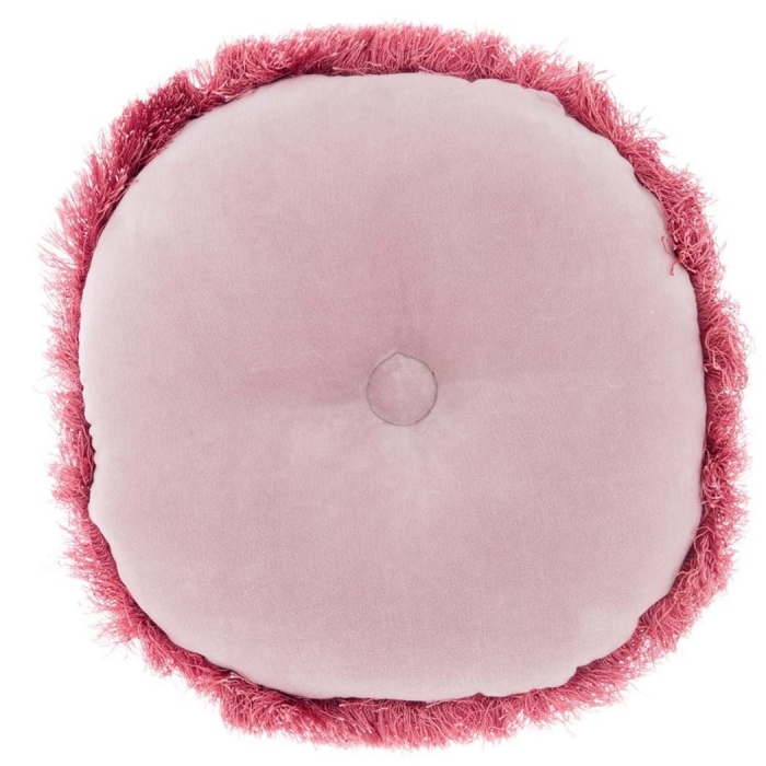 Seidenzarter und sanft glänzender Blanchette Baumwolle Samt Velours in einem attraktiven Rosé, die feine Franseneinfassung akzentuiert mit Raffinesse.